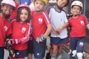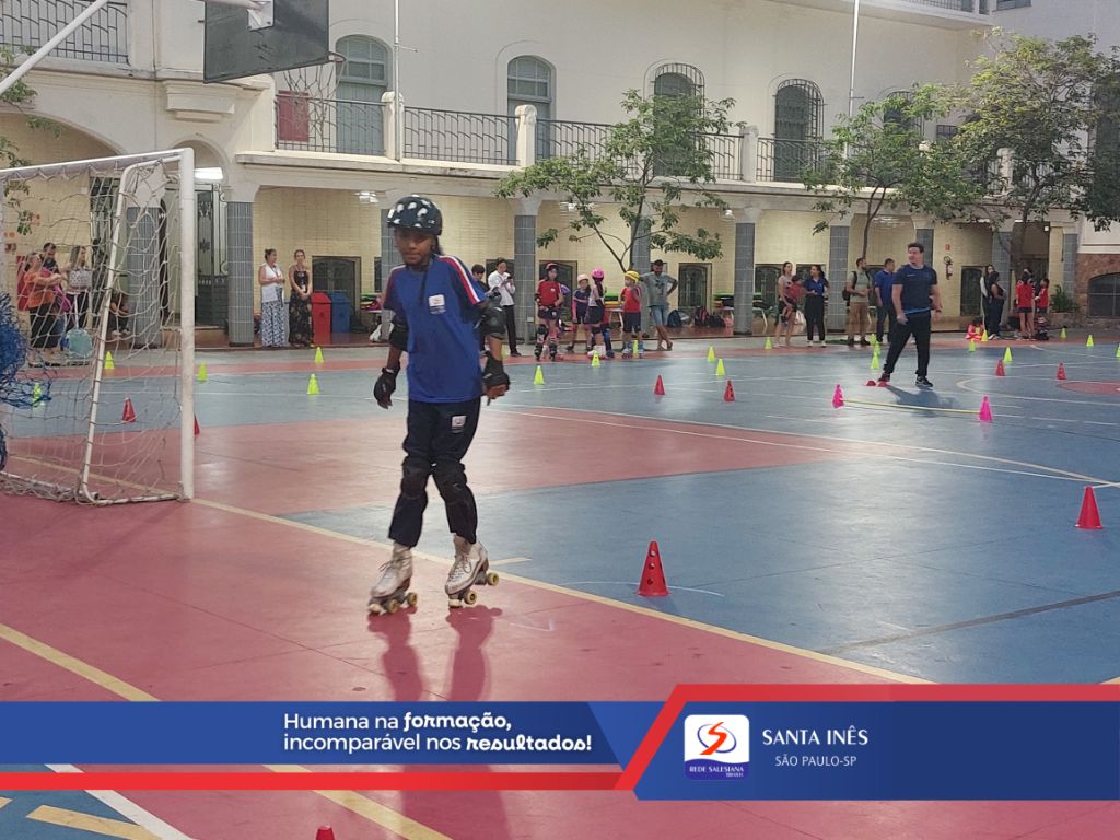 Durante a aula, as crianças apresentaram diversas técnicas aprendidas ao longo do ano, mostrando sua evolução sobre rodas e seu desenvolvimento em atributos como espírito de equipe, empatia e respeito ao próximo.